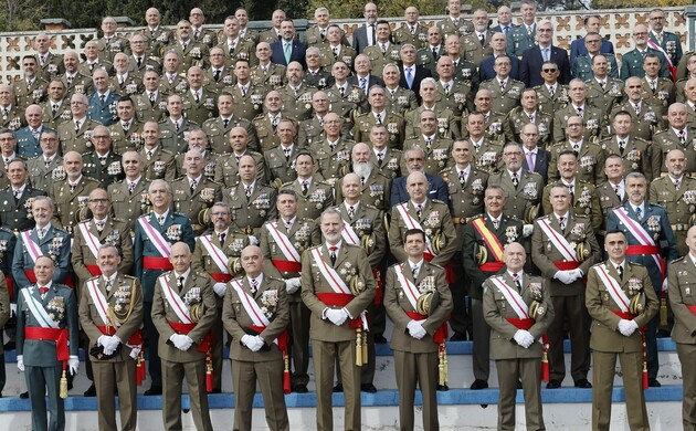 Don Felipe ha presidido el 40º Aniversario de la Jura de Bandera de la XLV Promoción de la Academia General Militar, donde ha estado acompañado por el director de la Academia General Militar, el general de brigada Prudencio Horche Moreno y el jefe de Estado Mayor del Ejército de Tierra, el general de Ejército Amador Fernando Enseñat y Berea, entre otros mandos militares.
