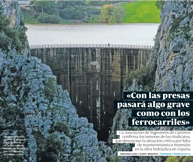 La situación en las presas estatales es «crítica», dice el sindicato CSIF (Central Sindical Independiente y de Funcionarios). Ni hay suficiente personal, ni se ha realizado el adecuado mantenimiento de las infraestructuras a lo largo de décadas, unas carencias que se agudizan en situaciones de alerta hidrológica. El sindicato ha reclamado una reunión urgente con la ministra para la Transición Ecológica, Sara Aagesen, ante «la necesidad de refuerzos estructurales urgentes». La denuncia se suma a los ya continuados llamamientos por parte de la Asociación de Ingenieros de Caminos Canales y Puertos y de la Ingeniería Civil. Jesús Contreras, vocal de la Junta Directiva de este organismo, confirma a ABC este panorama: el 65% necesita renovar los sistemas de auscultación, el 30% precisa refuerzos estructurales y el 50% demanda rehabilitación.