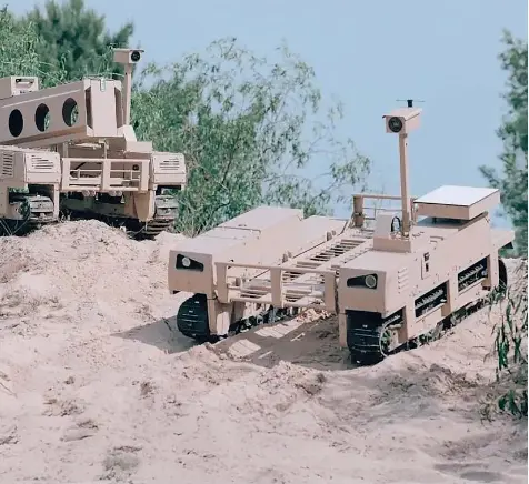 Sin embargo, y aparte del ámbito aeronaval, donde parece que los drones tienen un porvenir asegurado, es en tierra donde se están poniendo ahora los esfuerzos para que los sistemas cumplan misiones trascendentales en el campo de batalla. Ejemplos de «tanques robóticos», perros robots y otra clase de vehículos hay bastante en fechas modernas, pero no parece que todavía tengan tareas definidas en el apoyo de las fuerzas terrestres convencionales.