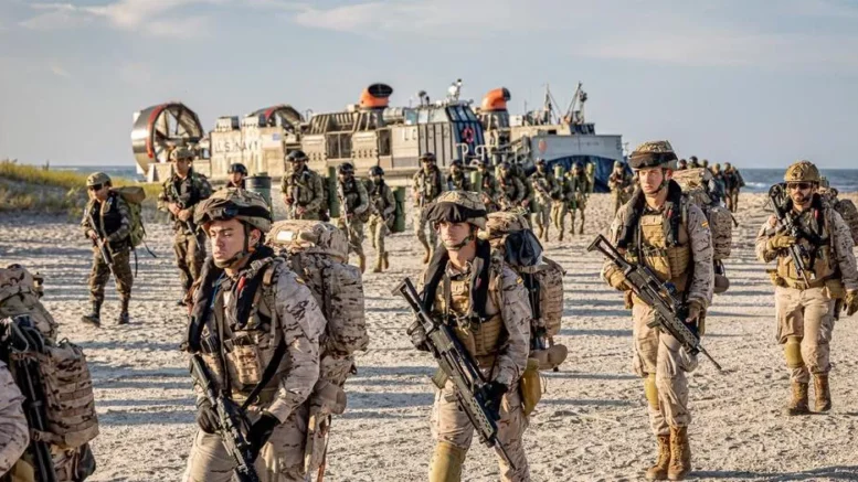 Desembarco de las fuerzas de Infantería de Marina españolas en la costa este de Estados Unidos en colaboración con el Marine Corps y la Marina estadounidenses.Armada