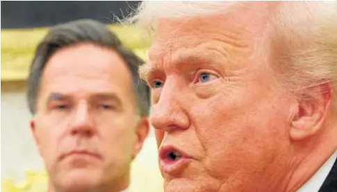 Donald Trump volvió a señalar ayer públicamente a España como el eslabón débil de la OTAN. No fue respuesta a una pregunta: lo mencionó él mismo, de manera espontánea, durante su comparecencia junto al secretario general de la Alianza, Mark Rutte en el Despacho Oval, que vino a Washington a tratar del conflicto de Ucrania. Afirmó Trump que «España no es un jugador en equipo» y que «el problema de España se puede resolver fácilmente», aludiendo al objetivo del 5% del PIB en gasto militar que exige a todos los aliados. Para Trump, el compromiso del 5%, alcanzado en la cumbre de La Haya, en junio, es crucial para respaldar a Ucrania ante la ofensiva rusa.